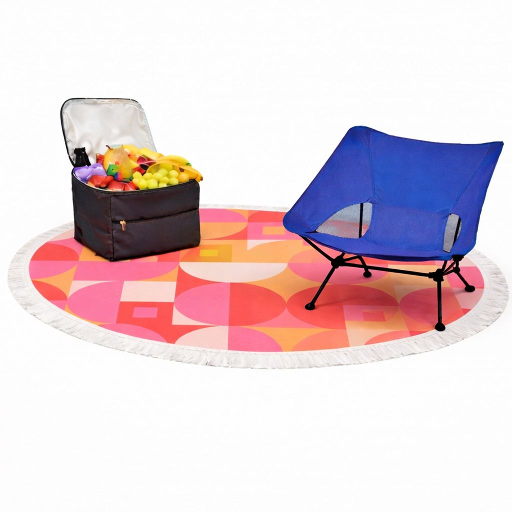 ערכת קיץ מדליקה הכוללת מגבת עגולה בעיצוב אישי, צידנית וכיסא