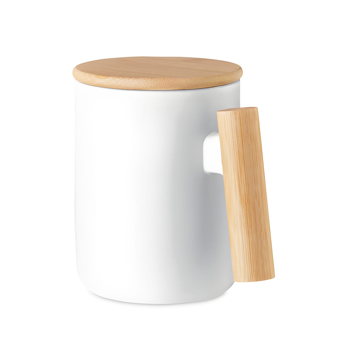 ספל מחרסינה עם מכסה וידית במבוק