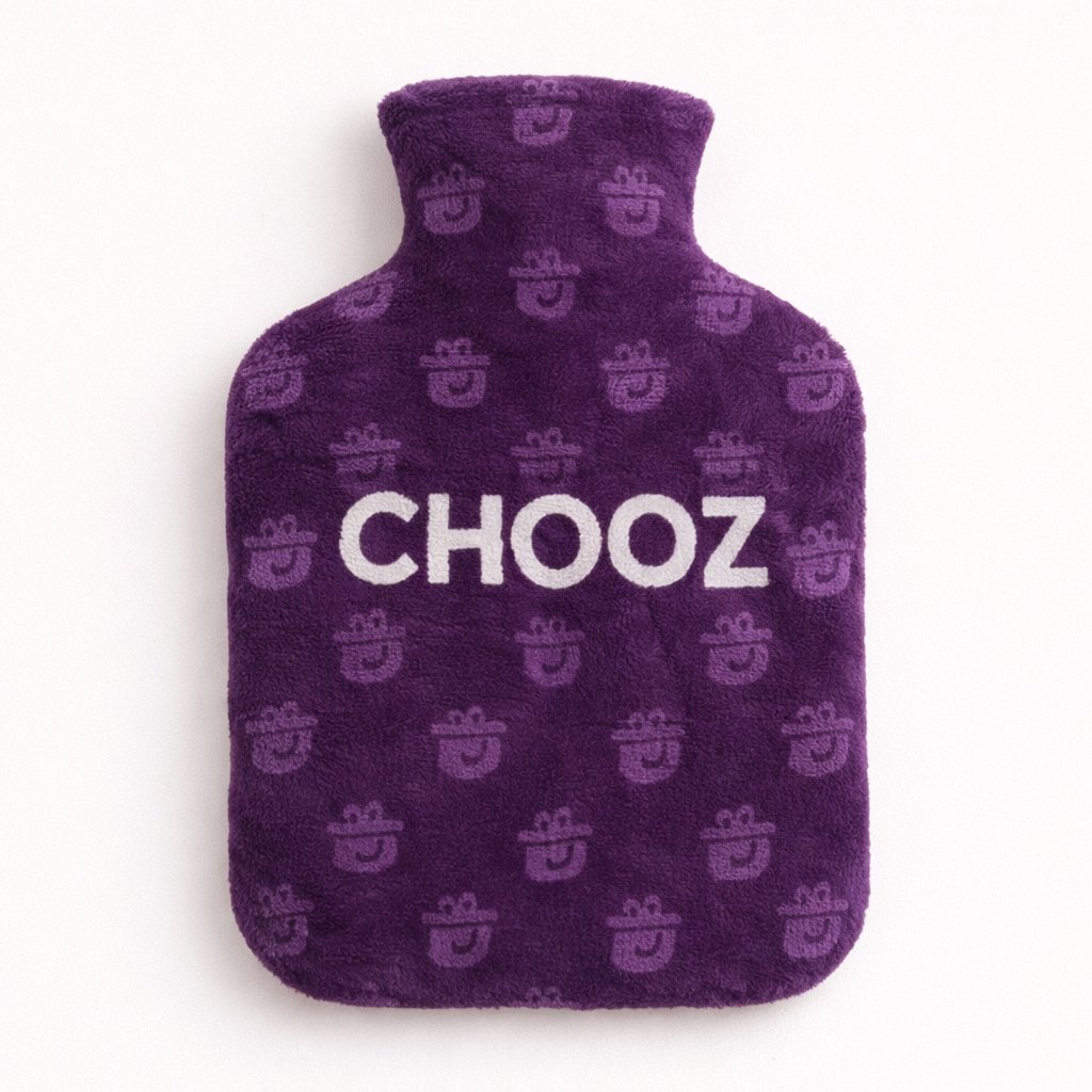 Jude silicone hot water bottle wrapped in a fully printed coral fleece cover. Ideal for warming up on chilly days. Cover size: 18 cm width a