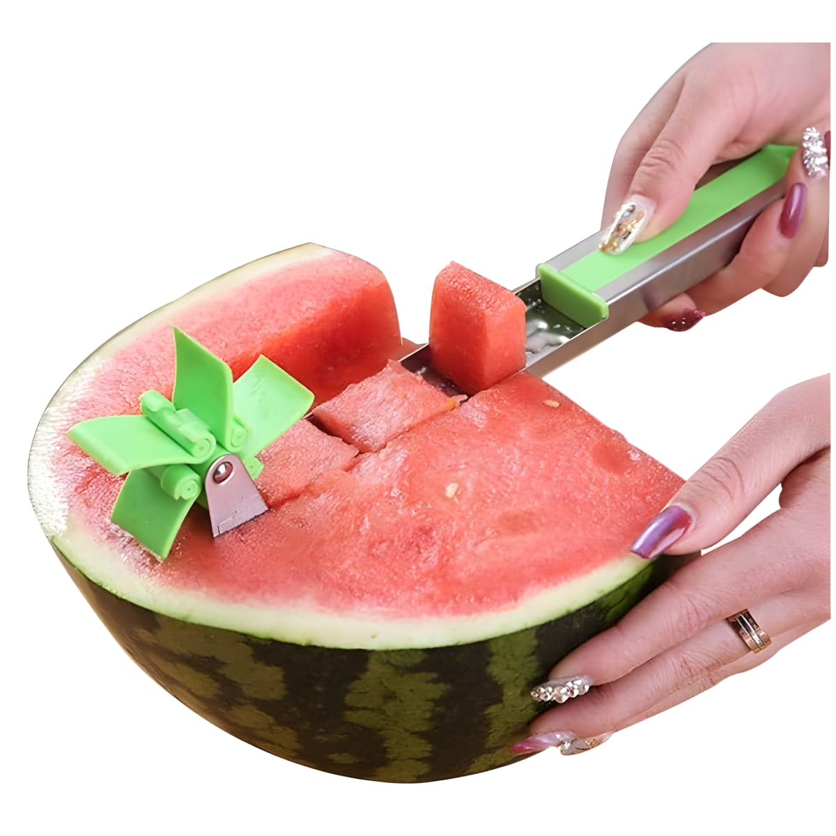 חותך קוביות אבטיח ומלון – סכין נירוסטה מתכתית