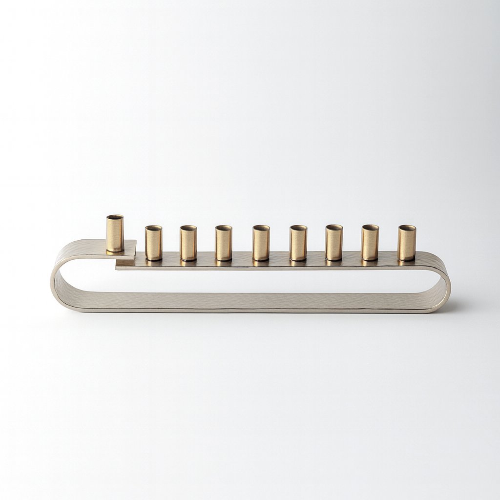 חנוכייה אלומיניום לנרות מהודרת 27x7 ס"מ