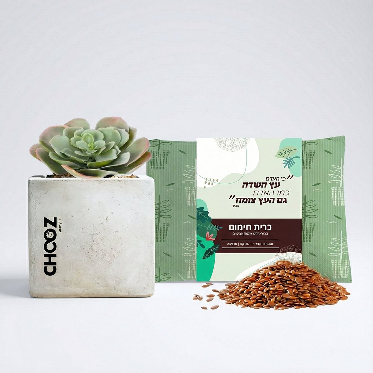חגגו את טו בשבט עם מארז ייחודי המשלב כרית חימום אורגנית עם זרעי פשתן לעציצים ועציץ בטון מעוצב עם סוקולנט. המארז המושלם להענקת חום ואסתטיקה ל