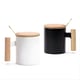 סט כוס קרמית מעוצבת עם מכסה עץ וכפית