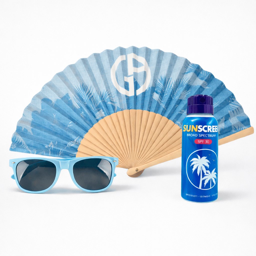 מניפה מסוגננת, משקפי שמש ומיני מקדם הגנה שהופכים כל יום קיץ לייחודי. מתנה עסקית יוקרתית שתשאיר רושם מתמשך על מקבלי המתנה.