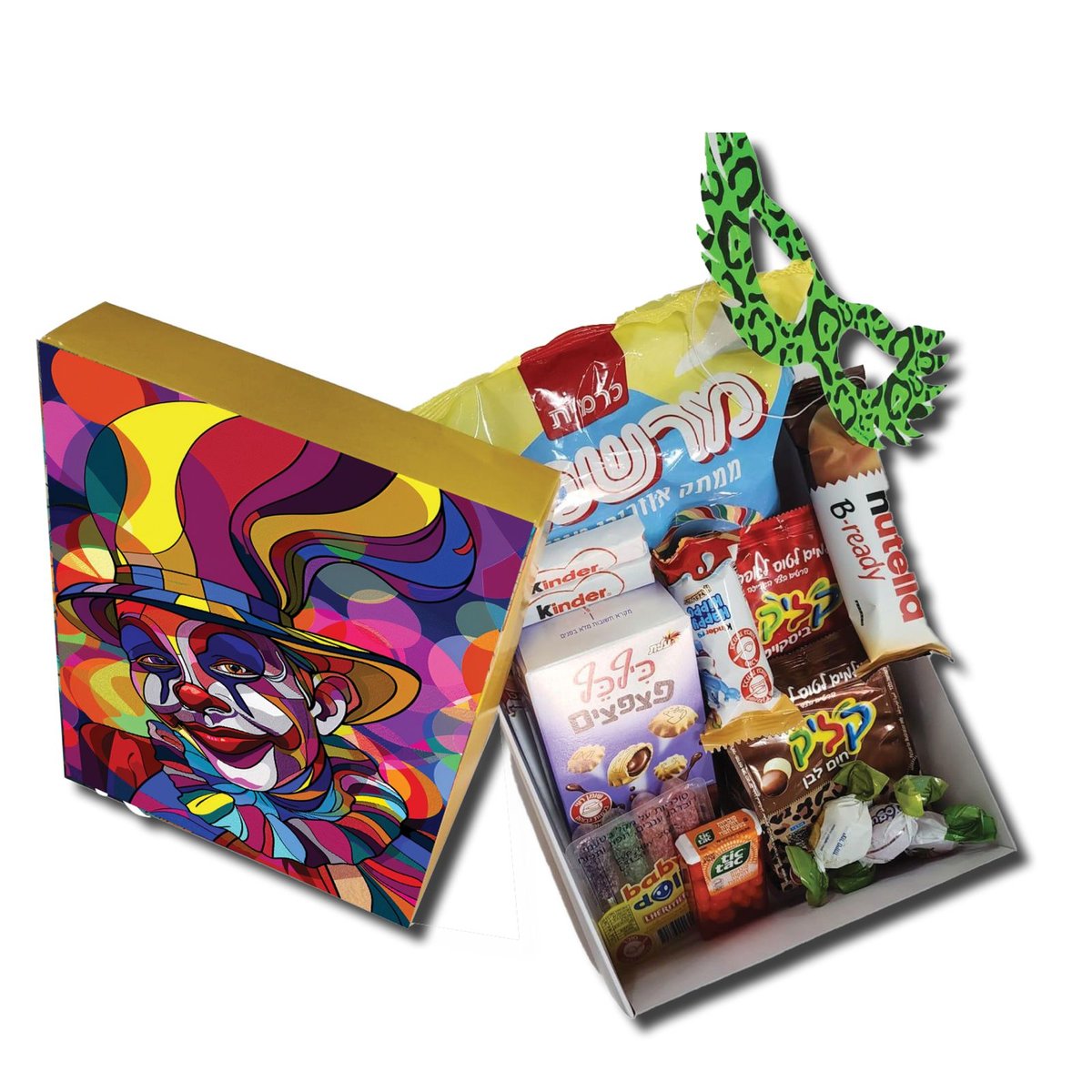 צאו למסיבת פורים מושלמת עם המארז החגיגי שלנו, המציע אקססוריז מיוחדים ברוח החג: משקפיים של ראפר, שרשרת גורמט זהב, איפור צבעוני, בנדנה אופנתית, רטייה של פיראט, נצנצים נוצצים, וגם מתוקים וחטיפים טעימים. המארז הזה מתאים לכל מי שרוצה להבריק בפורים הקרוב!