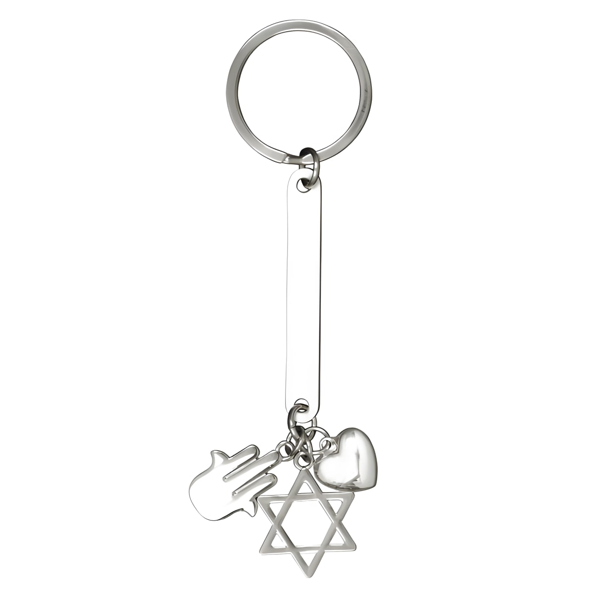 מחזיק מפתחות 'לאקי' עם מגן דוד, חמסה ולב באריזת מתנה