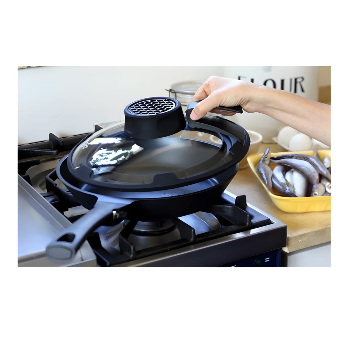 הכירו את מכסה חכם ARIA – הפתרון המושלם לבישול יעיל ונטול ריחות. עשוי זכוכית עמידה וסיליקון יתרני, המכסה כולל פילטר חדשני ללכידת אדים וריחות