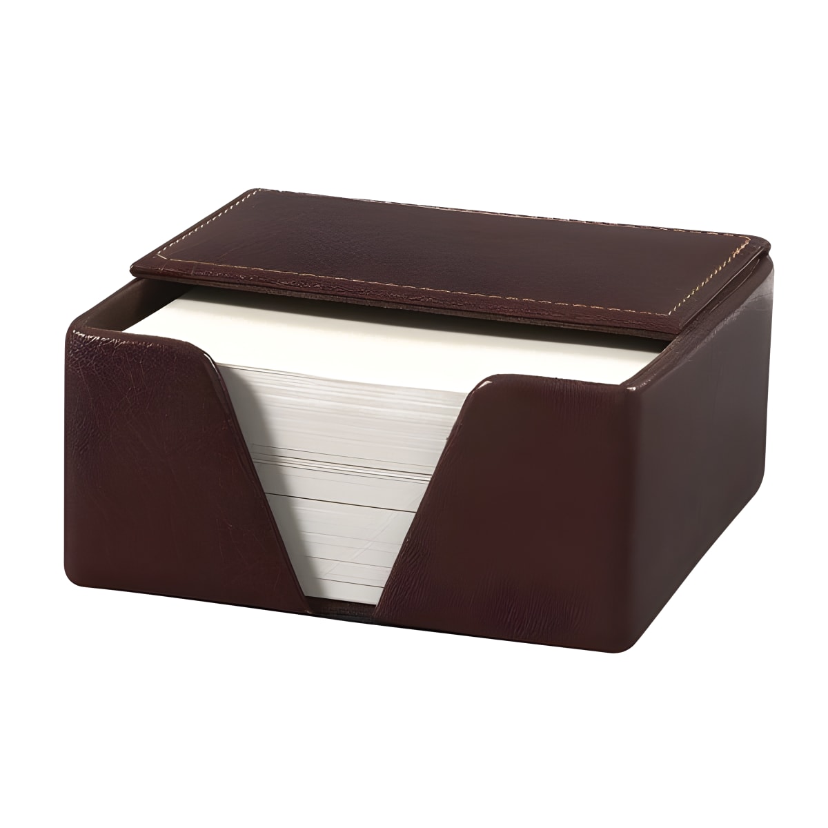 מעמד בלוק ממו מעור מידות: גובה - 4.5 ס"מ, רוחב - 10 ס"מ, עומק - 10 ס"מ מתאים כחלק מסט עם פריטי יוקרה אחרים כגון: משטח שולחני מעור , מחברת מע