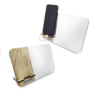 מעמד לנייד מעץ משולב מראה ייחודית, אידיאלי לשימוש בבית או במשרד. המעמד מגיע שטוח להרכבה עצמית בקלות. גודל המראה: 13X13.5 ס"מ גודל המוצר: 7X1