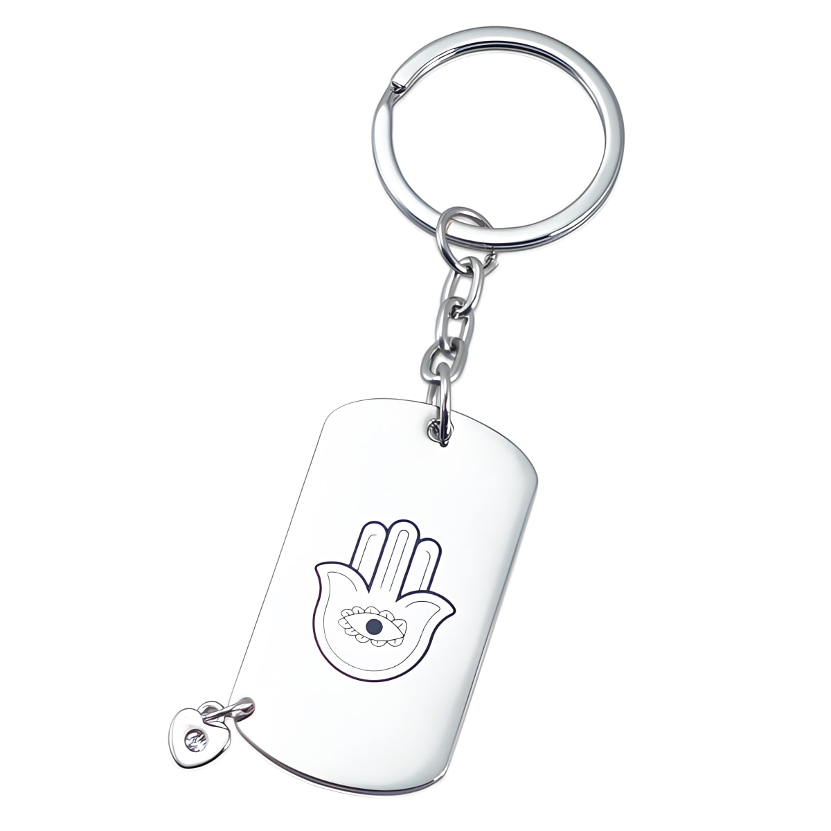 גלה את מחזיק המפתחות המתכתי המושלם המעוטר בחמסה ותליון בצורת לב נוצץ ומונח בגימור ניקל מבריק. המחזיק מגיע באריזת מתנה שחורה, ומביא איתו יוקרה וסגנון ייחודי. המתנה האידיאלית לכל אחד שהוא מעריך יופי וזוהר. תפוס את הלב של האנשים החשובים לך עכשיו עם הפריט היפיפה הזה!