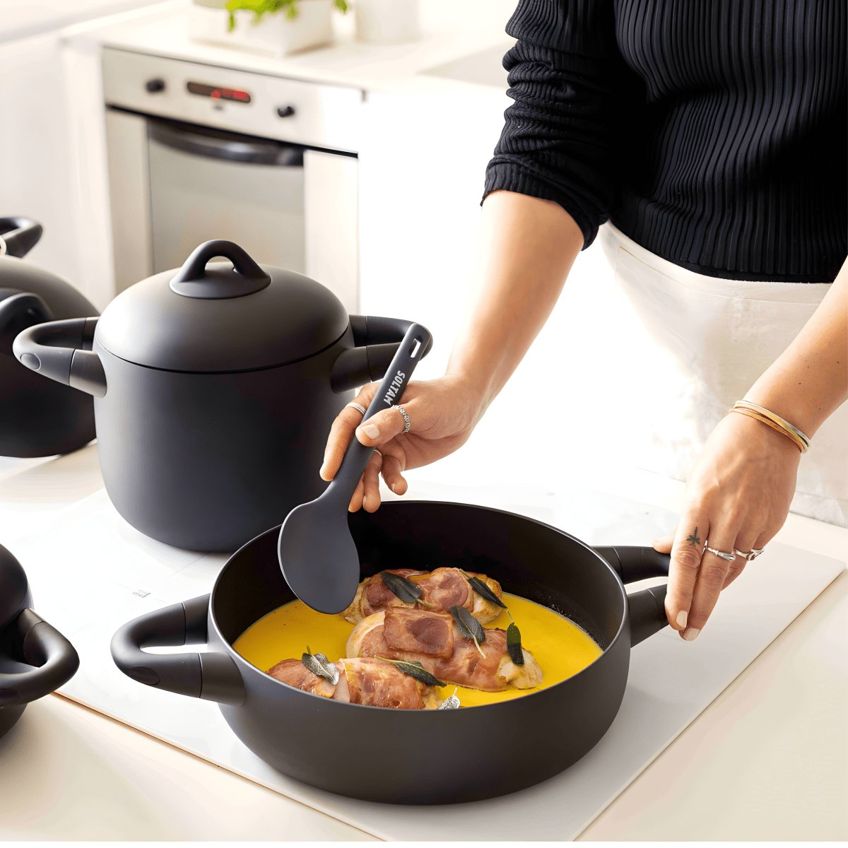גלה את סוטאז' 24 ס"מ מסדרת טוויסט מבית סולתם, אידאלי לבישול ולהגשה. מיוצר מאלומיניום עמיד וכולל ציפוי non stick מתקדם C3+ מגרבלון גרמניה, לל