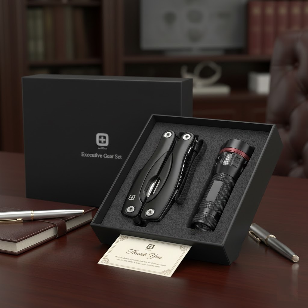 סט לדרמן יוקרתי עם פנס POLOSWISS באריזת מתנה