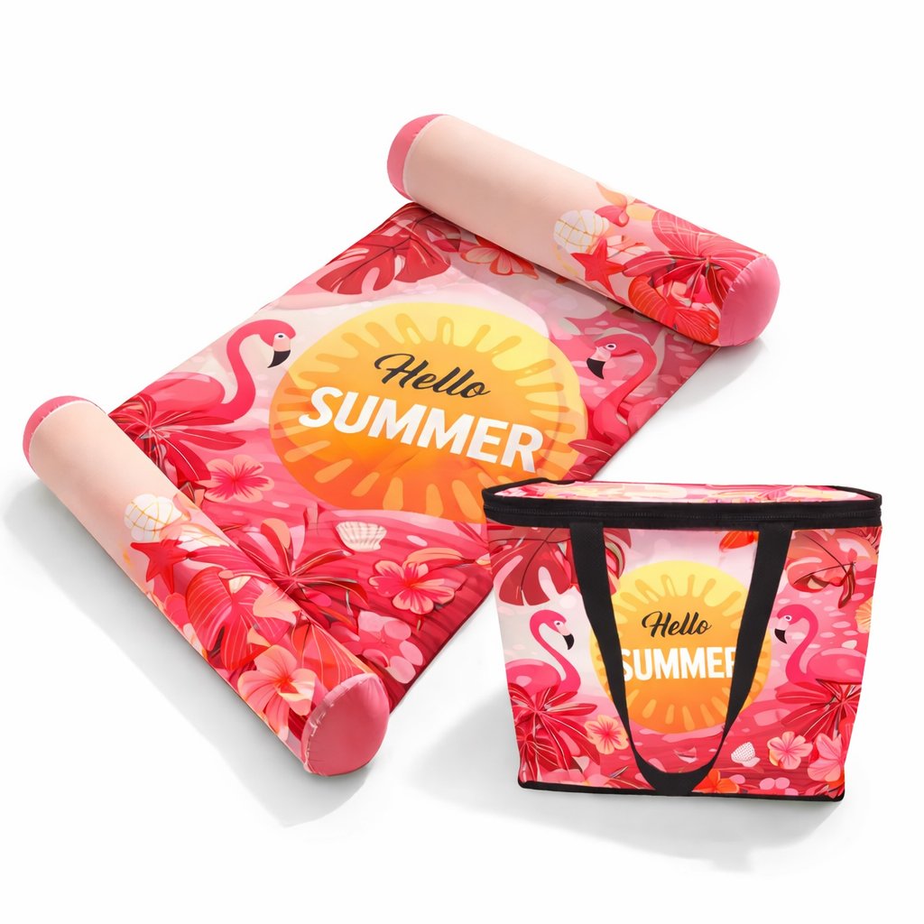 גלה את הסט המושלם לחוף הים ולבריכה עם צידנית ממותגת בהדפסה אישית על כל השטח, יחד עם מזרן ים מפוספס ומגניב. ניתן לבחור בגדלים שונים עבור הציד