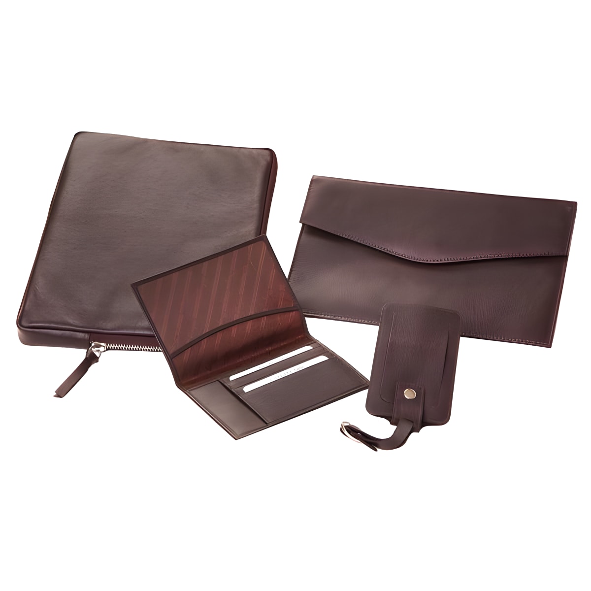 סט נסיעות יוקרתי מעור נאפה משובח הכולל בתוכו: נרתיק מרופד לאייפד בסגירת רוכסן היקפית ארנק נסיעות בעיצוב מעטפה- מתאים לכרטיסי טיסה ומסמכי נסיעה תג מזוודה כיסוי לדרכון עם חריצים ותא לכרטיסים