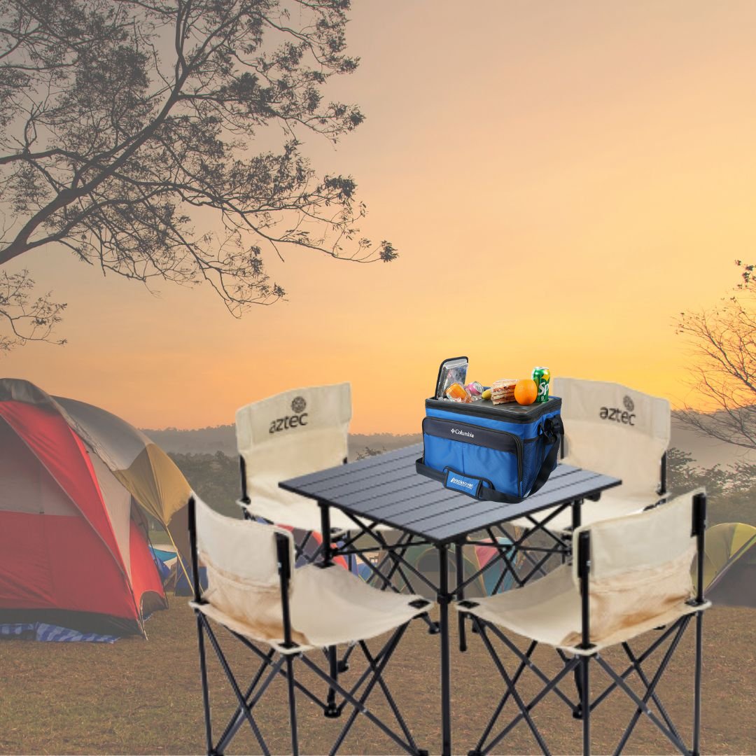 קבלו את הסט המושלם לטיולי שטח מבית AZTEC עם צידנית Columbia. המערכת כוללת שולחן קפה, ארבעה שרפרפים מתקפלים עם משענות ותיק נשיאה נוח.