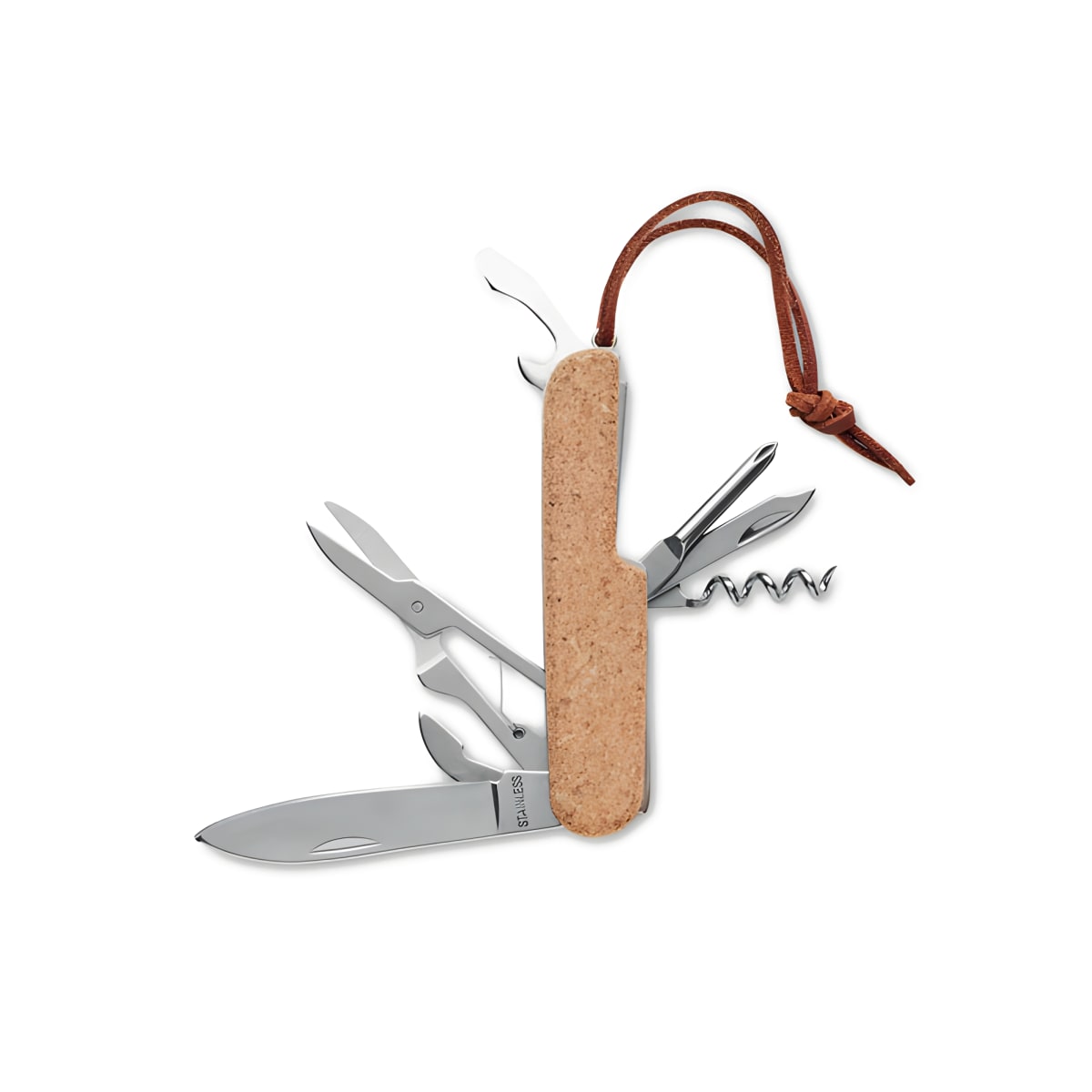גלה את הסכין הכיס הרב תכליתי שלנו מפלדת אל-חלד הכולל כיסוי שעם. בעל 7 פונקציות כמו פותחנים, סכין, מספריים, מברג פיליפס, קובץ ופותחן יין. השע