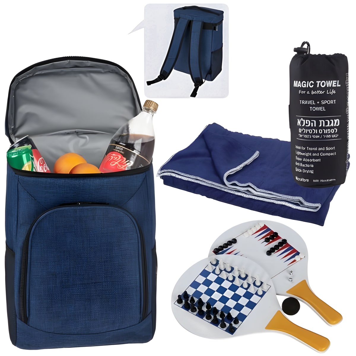 גלה את ערכת החוף המושלמת לנופש חופי בלתי נשכח! הערכה כוללת תיק חוף משולב עם צידנית דגם 4718 משתלבת עם מגבת חוף דרייפיט עגולה בתוך נרתיק נשיאה דגם 5016 והרכיב המשלים - סט משחקי פנאי לחוף הכולל מטקות, ששבש ושחמט דגם 2159. התיק והמגבת זמינים במגוון צבעים, לחלוק על פי זמינות המלאי. קנה עכשיו ושדרג את החוויה שלך על החוף!