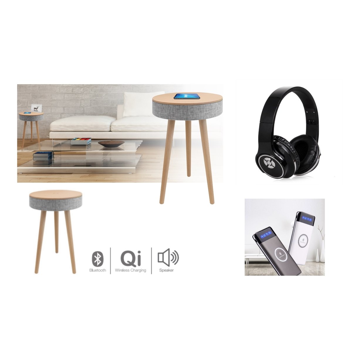 ערכת שמע חכמה עם שולחן רמקול, אוזניות ופאוור בנק