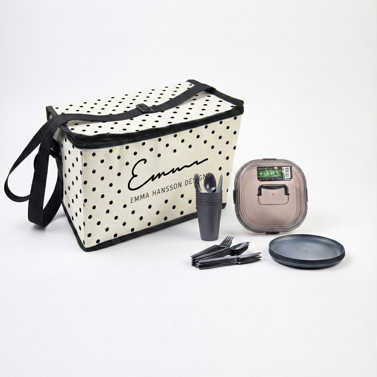 הפכו את הפיקניק שלכם למושלם עם מארז הכולל צידנית מעוצבת בהדפס צבעוני מלא בהתאמה אישית ומיוצר כחול לבן. בנוסף, תקבלו סט כלים רב פעמי איכותי המתאים ל-6 סועדים. פתרון אידיאלי לפיקניק משפחתי או חברתי, עם עמידות ונוחות מירבית.