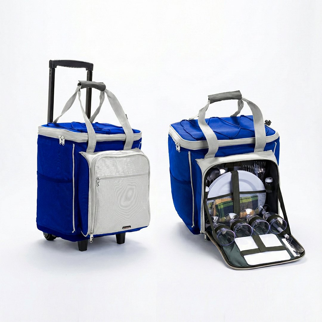 הפתיעו את המשפחה עם קערת הקירור הגדולה, מושלמת לפיקניקים ולטיולים. קלה ונוחה לנשיאה עם גלגלים ומוט מתכוונן. כוללת כלי אוכל ל-4 סועדים ותאים