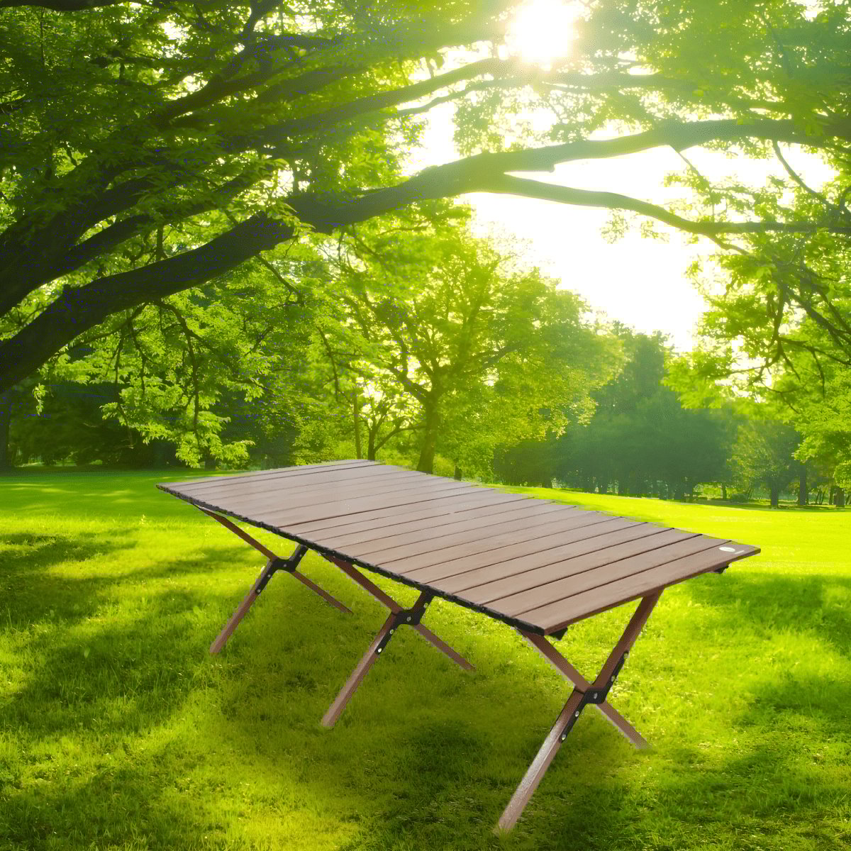 שולחן מתקפל לקמפינג בעיצוב עץ עשוי מתכת