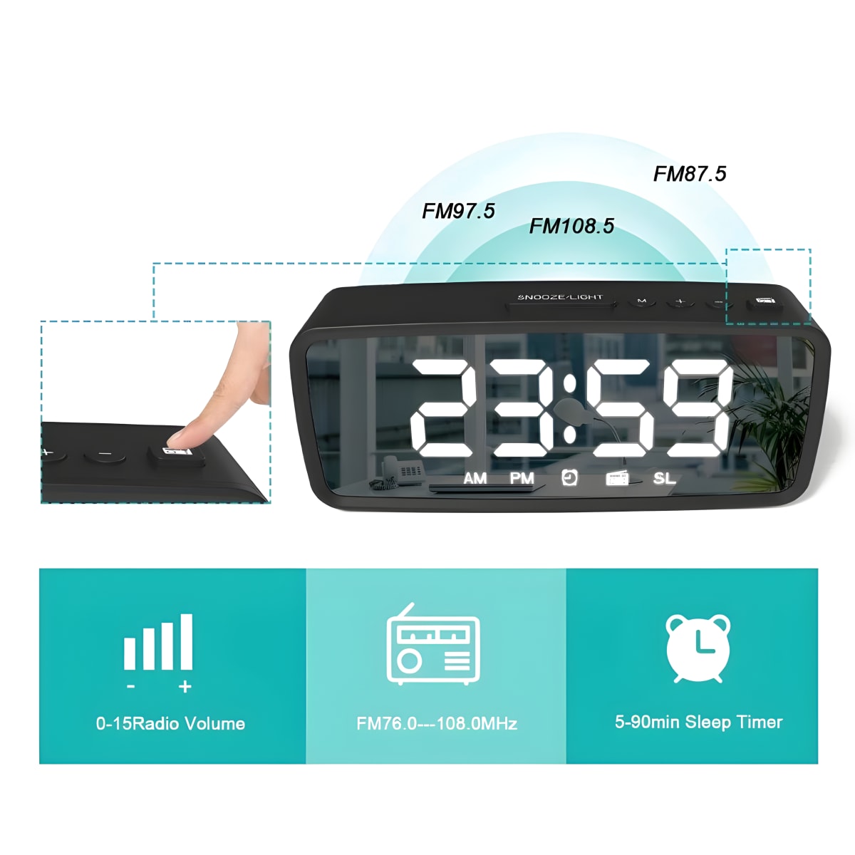 שעון מעורר דיגיטלי עם רדיו FM וטיימר שינה