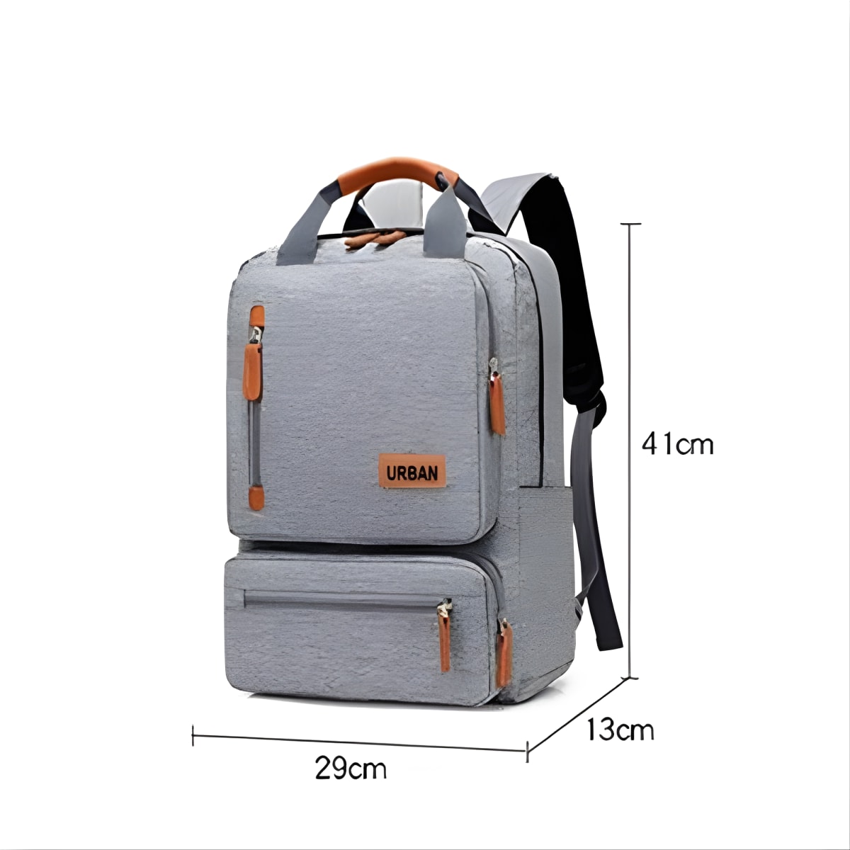 תיק גב אורבני בעיצוב מודרני ופונקציונאלי, מתאים לשימוש יומיומי וגם לטיולים. מכיל מספר תאים לאחסון וכיסים נגישים למוצרים קטנים.