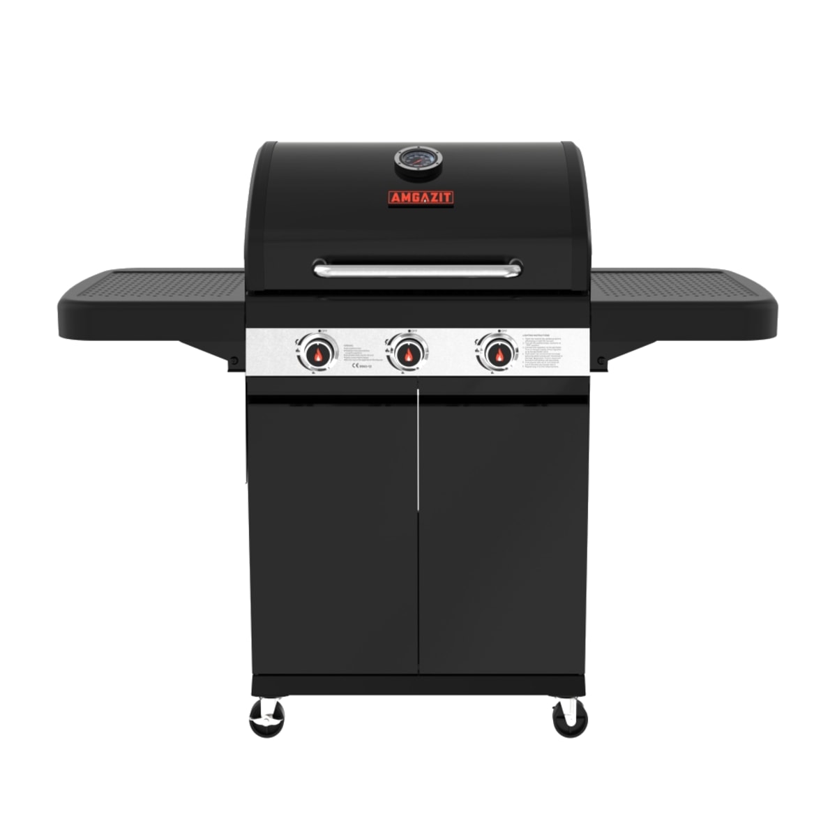3-Burner HEAT RED Gas Grill with Folding Side Shelves & Durable Cover
