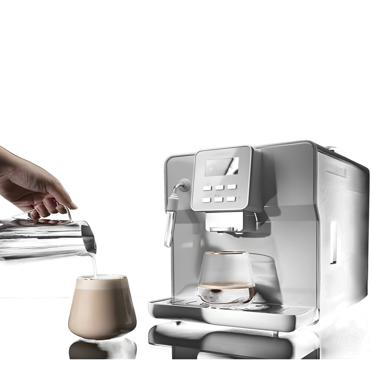 Discover the Cecotec 19-bar automatic coffee machine and enjoy espresso and Americano at the press of a button. With Force Aroma technology, achieve optimal froth and exquisite taste every time. Customize to your preference with programmable settings for quantity, strength, and temperature. Includes user-friendly LCD display, sealed coffee bean container, conical grinder, energy-saving system, and self-cleaning program. Order now for perfect coffee anytime.