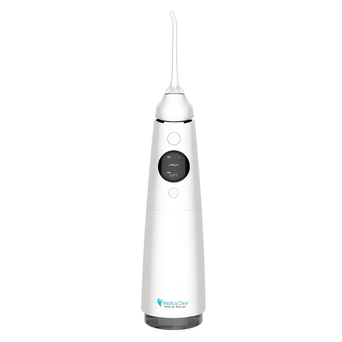 חוויית היגיינה אורלית מתקדמת עם סילון מים דנטלי אלחוטי מבית מדיקס קאר. צג דיגיטלי קריא ומיכל מים פנימי של 280 מ"ל מציעים נוחות ויעילות לכל מ