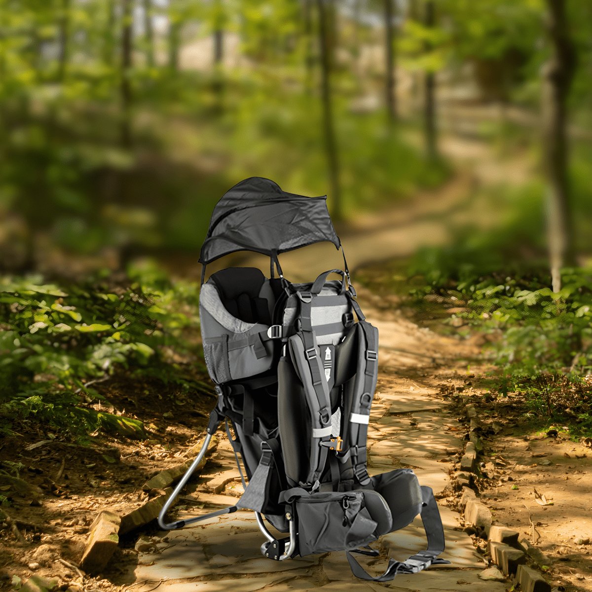 The perfect baby carrier - featuring an aluminum frame providing stability and transformable into a chair. Includes a 15-liter diaper bag made of durable D600 PU fabric and Adjust Velcro back system for utmost comfort. Enhance your outing with the small cooler to keep food fresh and a full sunshade along with a dedicated rain cover.