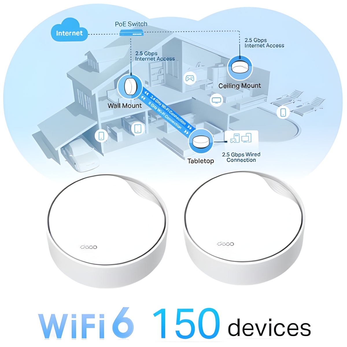שדרגו את חווית האינטרנט הביתית בעזרת זוג מכשירי אקסס פויינט DECO X50-PoE AX3000 המתקדמים, המספקים כיסוי אלחוטי רחב, מהיר ואמין בכל הבית בזכו