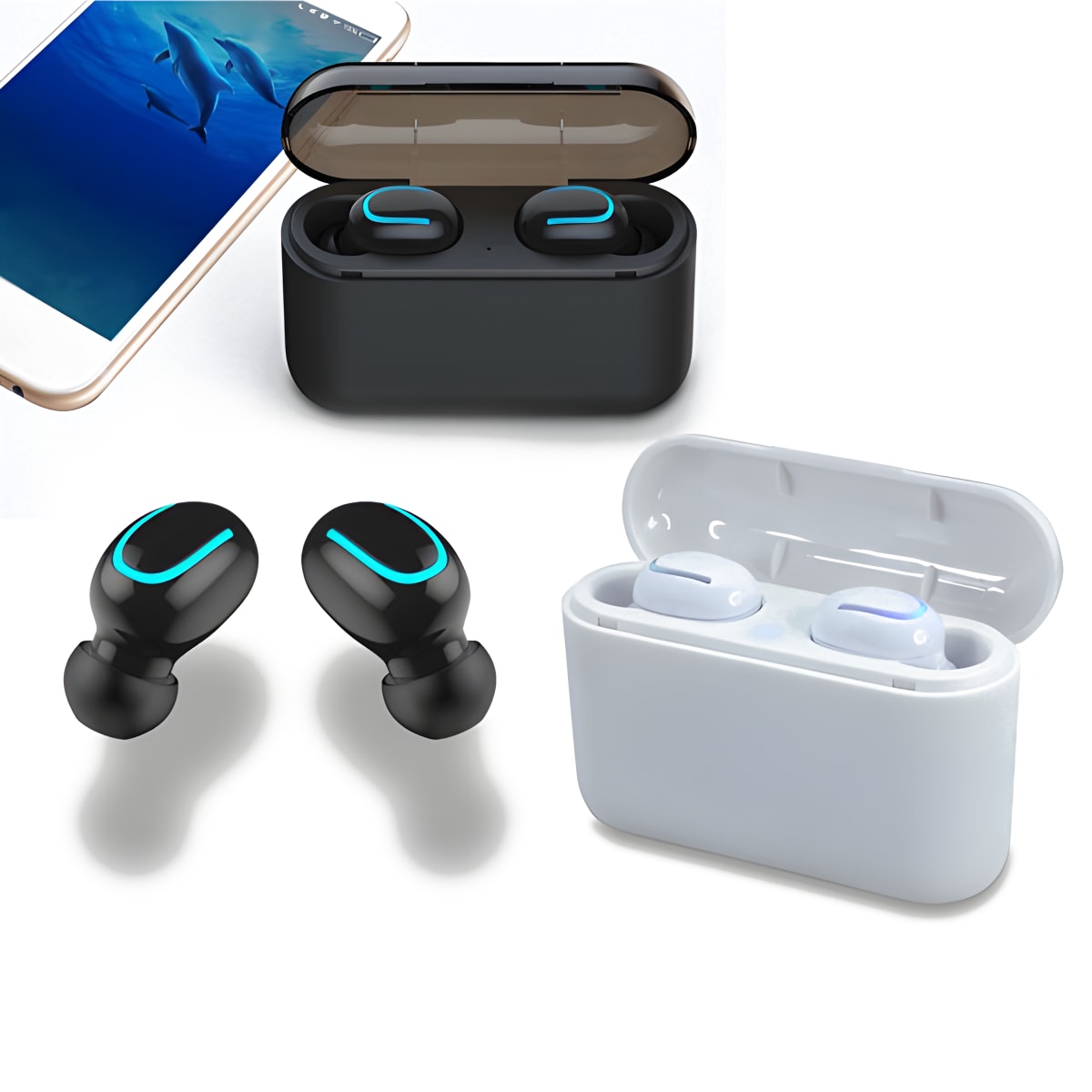 גלו אוזניות אלחוטיות בעיצוב קומפקטי וקל משקל, בצבעים שחור לבן. כוללות תיבת טעינה חכמה בנפח 1500mAh, המשמשת גם כמטען נייד. חוו סאונד ברמה גבו