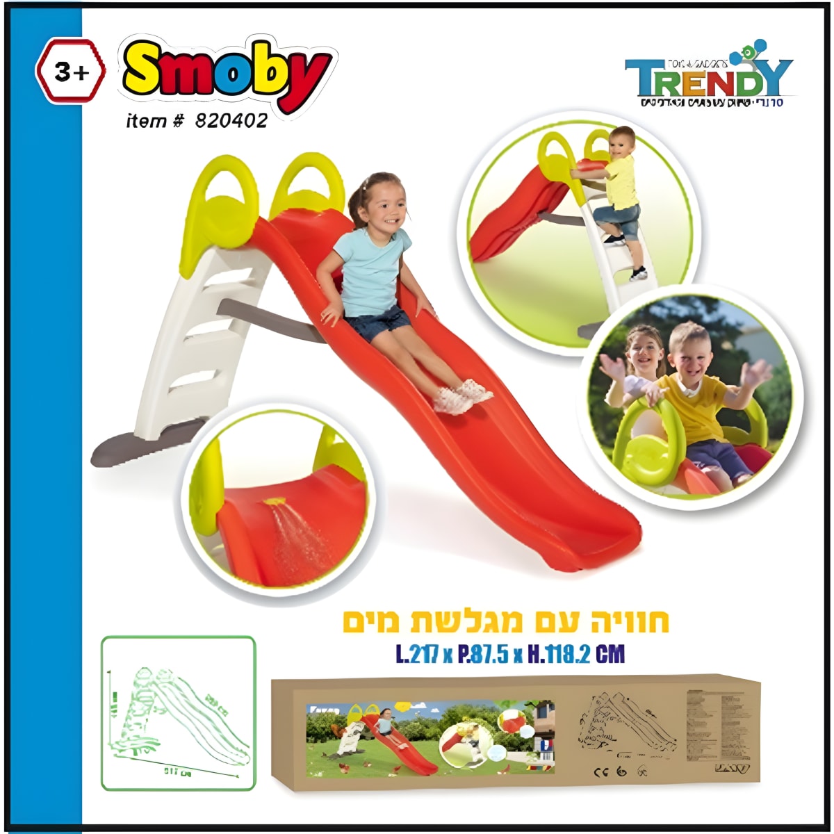 המגלשה של SMOBY מציעה חוויה בלתי נשכחת לילדים עם מגלשת פלסטיק בעיצוב ארוך ויפהפה באורך של 2 מטר לשעות של הנאה וכיף.
