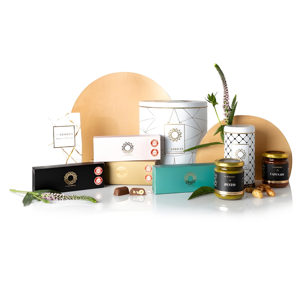 מארז ייחודי המכיל:קורל - קופסת פח עם שוקולד חלב ולבן 'בייטס-קופלת'פסטו - ממרח בזיליקום עשיר עם קשיוטפנד - ממרח זיתים מזן קלמטה מקוריספיר - פ