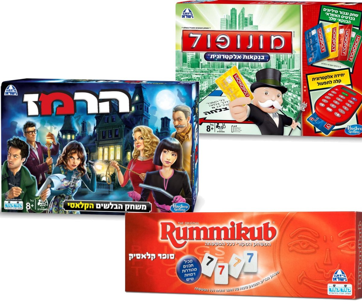 Discover the perfect family game set by Kodkod! Unforgettable fun with the most popular games: Electronic Monopoly, Clue, and Super Classic Rummikub.