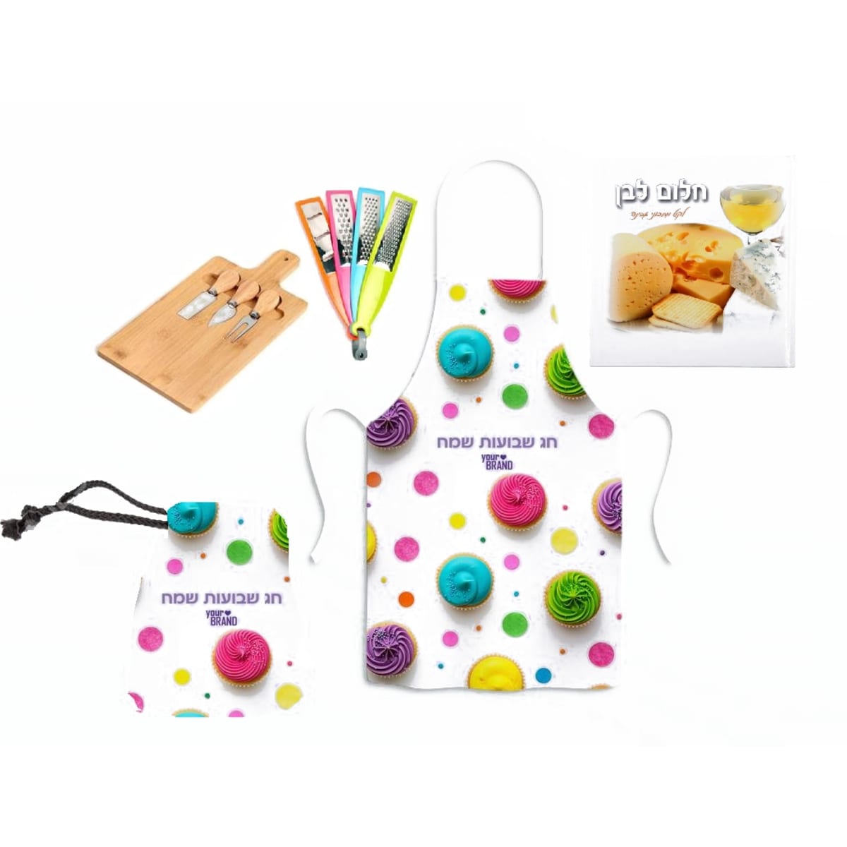 מארז מתנה מושלם לשבועות שיכניס טעם ויוקרה לחג שלך! המארז כולל: סינר אול אובר איכותי תיק אול אובר מעוצב סט מהודר של קרש וסכיני גבינ