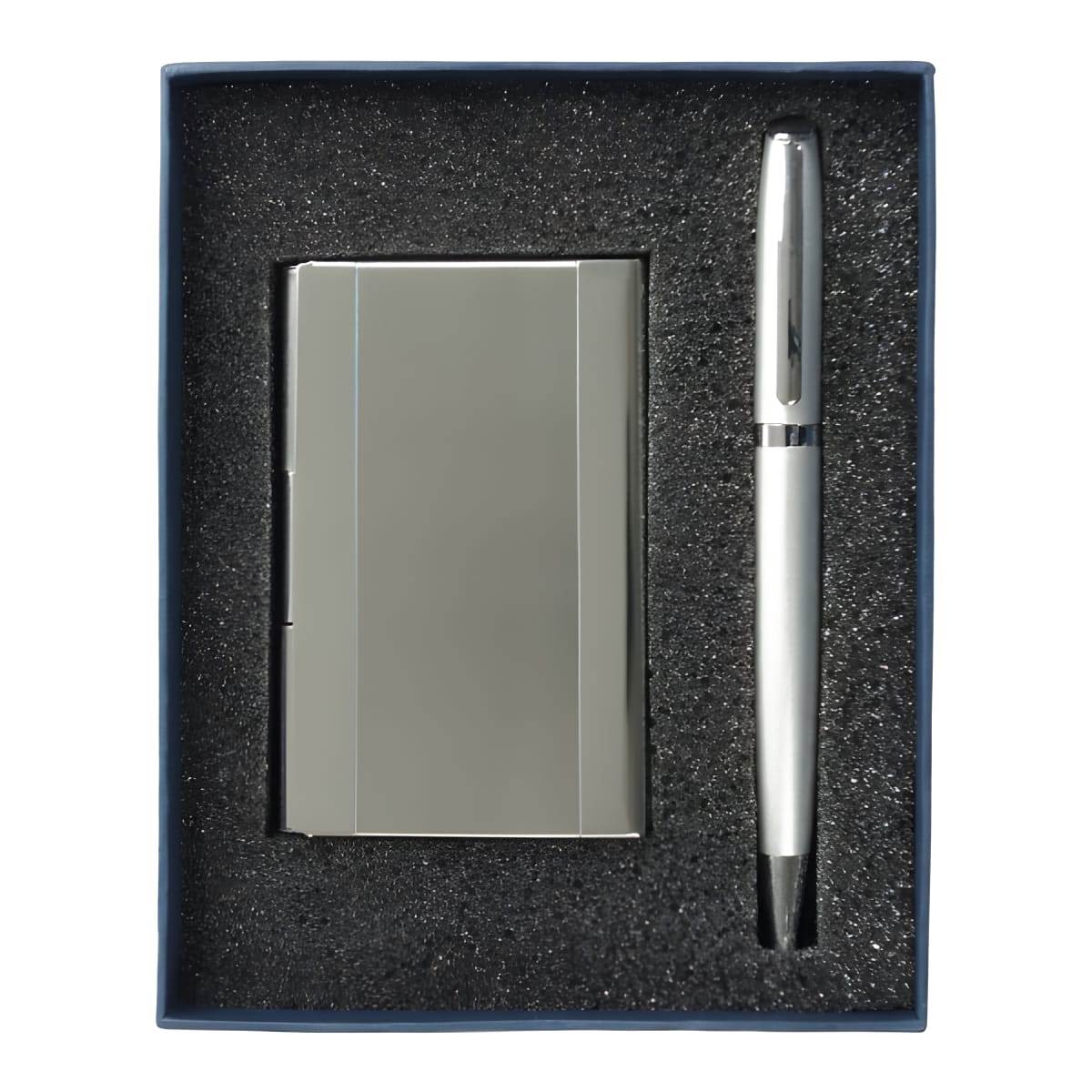 הפתיעו עם סט יוקרתי למנהלים הכולל עט כדורי וקופסת כרטיסי ביקור ממתכת בקופסה מהודרת. מתנה מושלמת לפגישות עסקים ויום עבודה. עיצוב מרהיב ואיכותי שאי אפשר להתעלם ממנו.