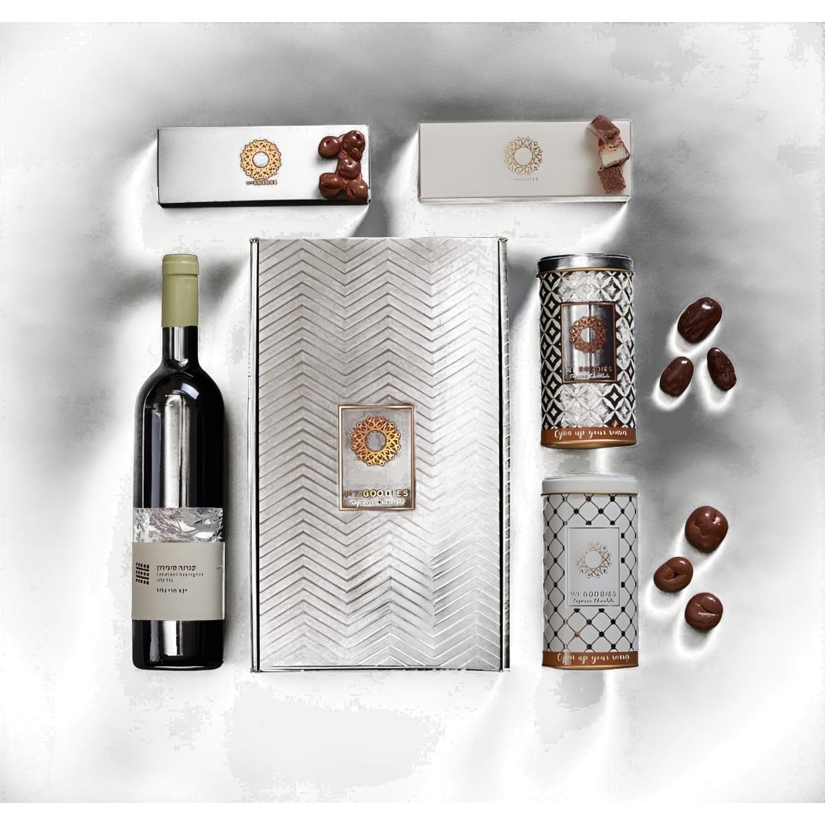 גלה חוויית טעמים בלתי נשכחת עם מארז מתנה הכולל יין אדום קברנה סוביניון מהמוביל שבגליל עליון, בתוספת פקאן מקורמל עטוף בשוקולד מריר, אגוז מלך בשוקולד חלב, וצימוק ממולאי שוקולד. תיהנה גם מתערובת קוביות קוקוס עשירות בשוקולד חלב ולבן, כל אלה מוגשים בקופסאות פח ייחודיות של מותג קורל וטופז.