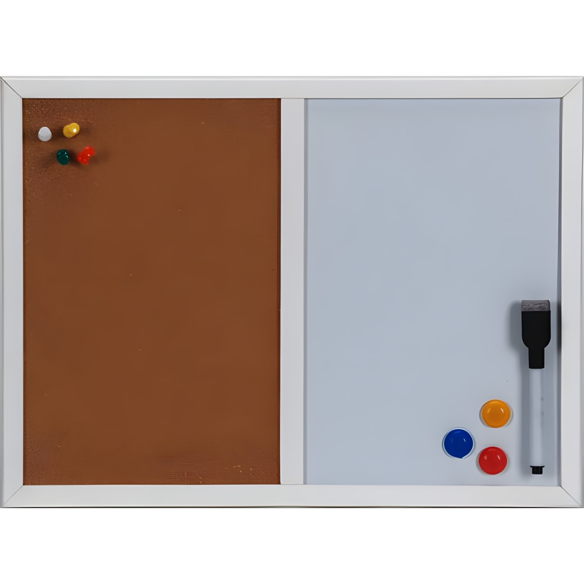 לוח מחיקה משולב מגנטי ושעם, הכולל מסגרת עץ איכותית. כולל טוש מרקר מחיק, נעצים, ושלושה מגנטים. נוח לתליה באמצעות חוט. מידות: 40X30 ס"מ. הבחיר