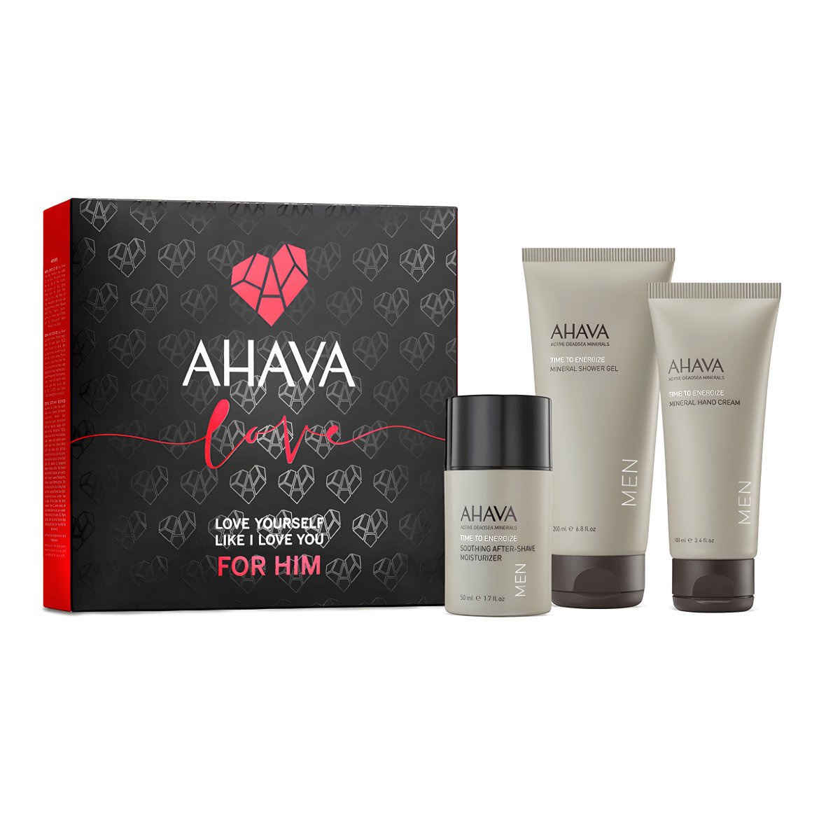 ערכת טיפוח לגבר עם קרם לחות, קרם ידיים וג'ל רחצה מבית AHAVA