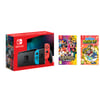 Nintendo Switch Bundle with Blue and Red Joy-Con, Screen Protector, Games and Annual Subscription