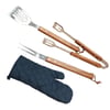 השלימו את הברביקיו שלכם עם סט כלים מושלם הכולל מזלג, מלקחיים, ספטולה וכפפה. כלים אלו עשויים ממתכת אל חלד עבה וכוללים ידיות עץ ארוכות לנוחות