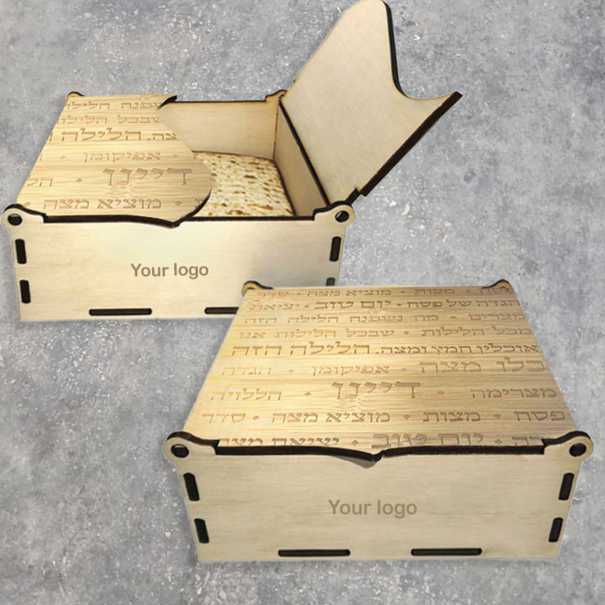 קופסת עץ איכותית למצות אשר ניתן להתאים אישית במיתוג עם שם או עיצוב משלכם. מושלם לחג הפסח ולשימוש יומיומי.