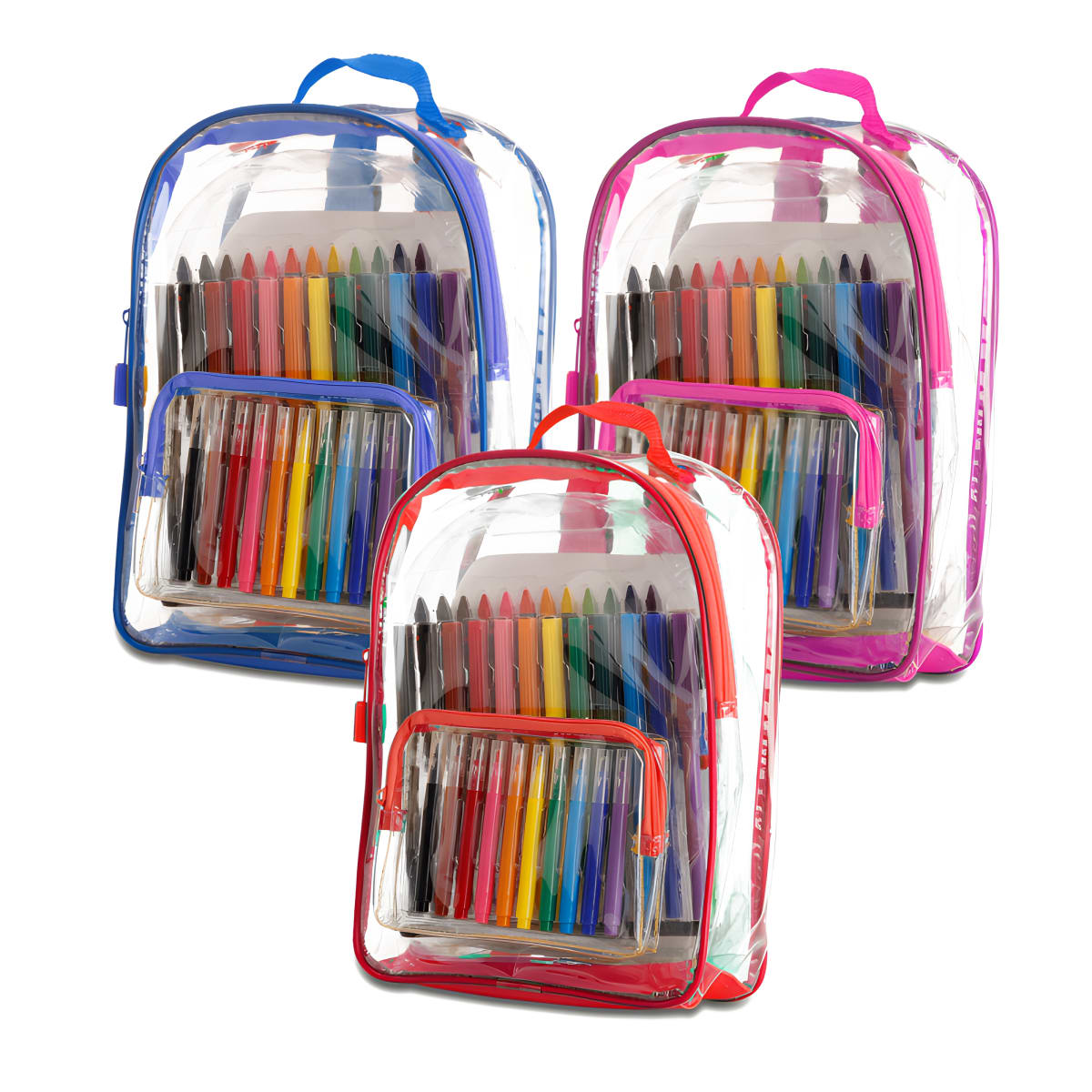 תיק ציוד ציור שקוף מושלם לילדים, כולל צבעונים ומרקרים בצבעים שונים. מתאים לשימוש ביתי ובית ספרי, עמיד ונוח לנשיאה.