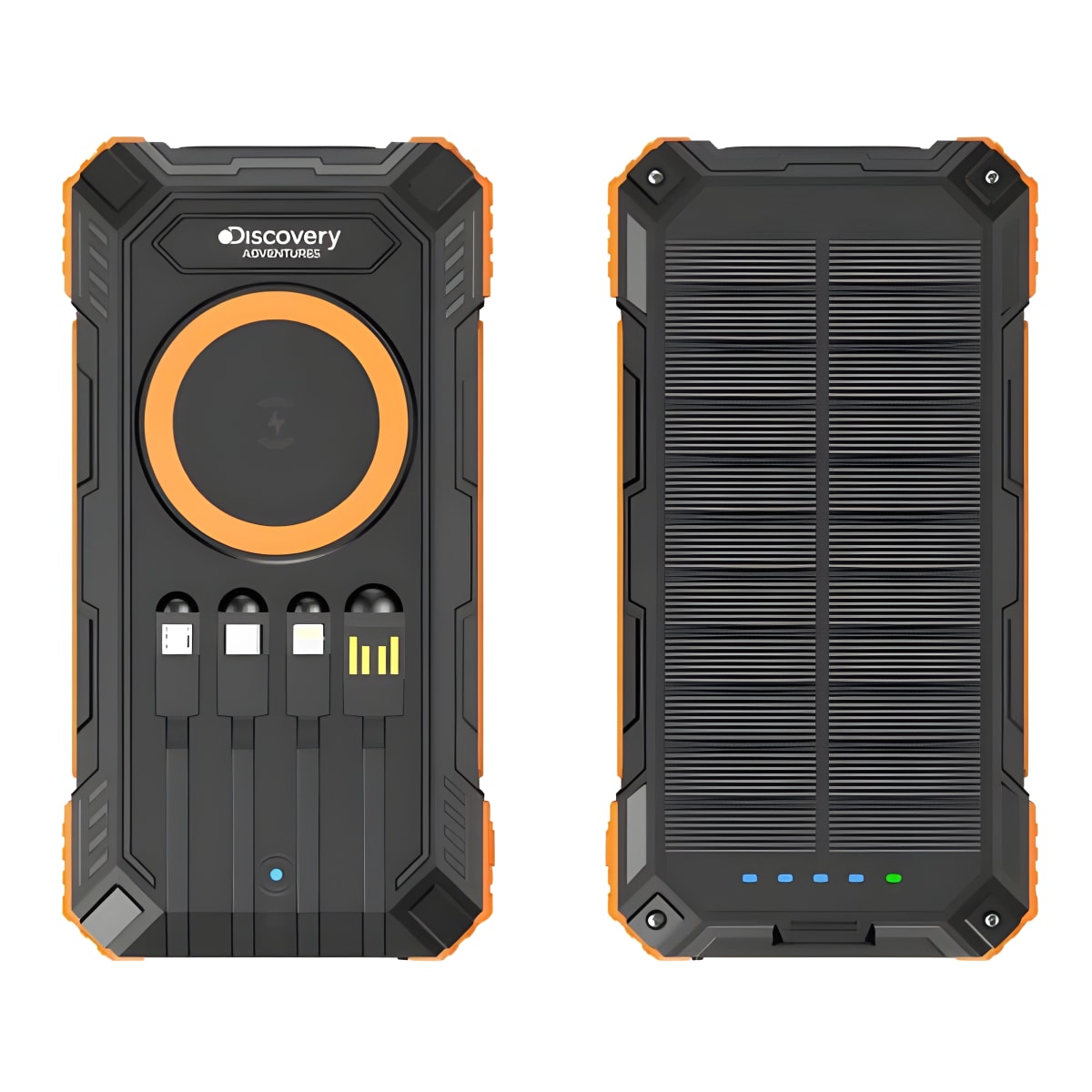 Discover the portable and powerful solar backup battery from Discovery! With a capacity of 20,000mAh, you can charge your devices efficientl
