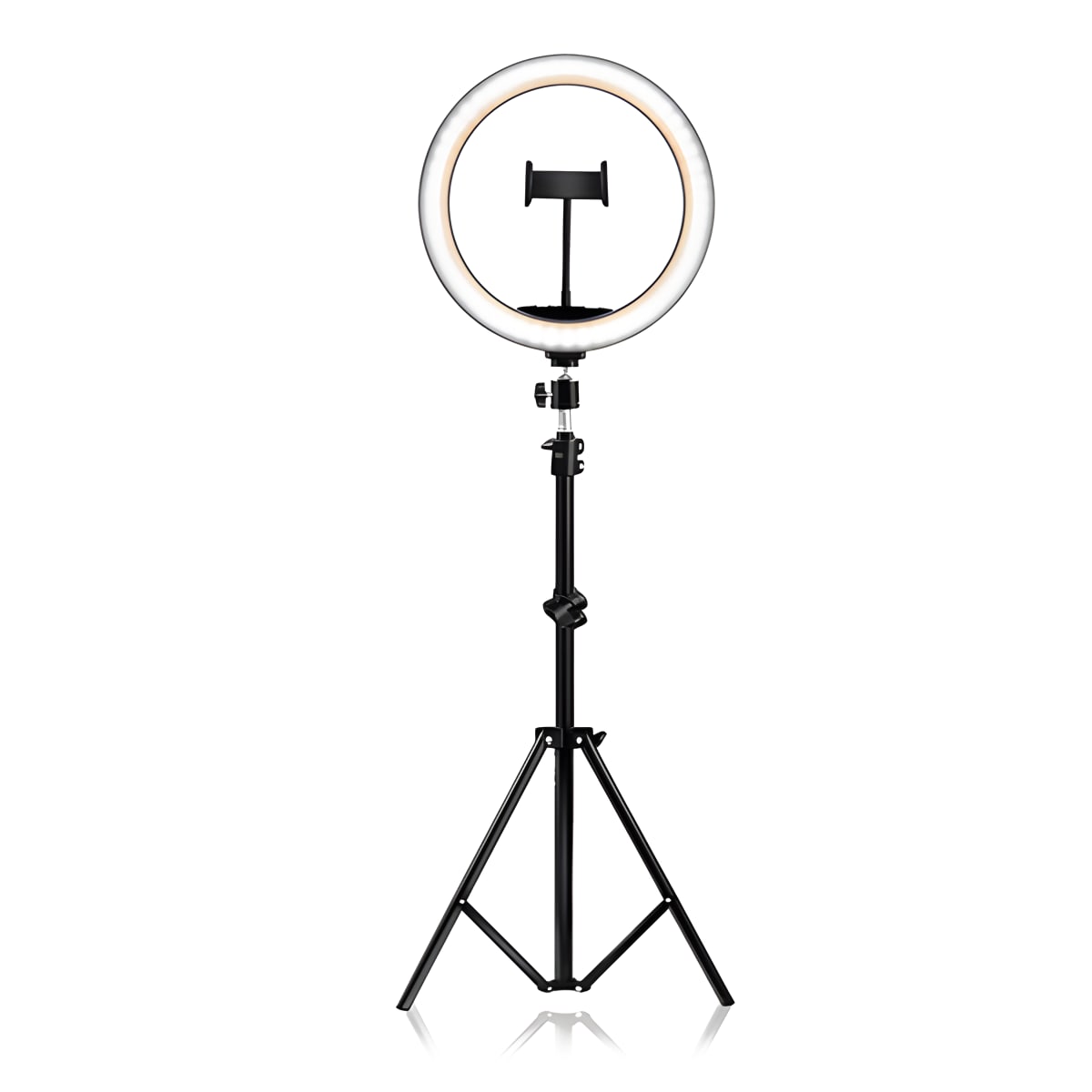 רינג לייט מקצועי בקוטר 26 ס"מ מושלם לצילום סרטוני TikTok, Youtube, איפור, שיחות זום ובלוגים. כולל שלט לשליטה על 3 גווני תאורה משתנים ו-10 עוצמות שונות. מגיע עם מתקן מתכוונן לחיבור הסמארטפון וחצובה טלסקופית בגובה עד 2.10 מטר וחיבור USB. כולל שלט בלוטות' לצילום מרחוק. אידיאלי לצלמים חובבים ומקצועיים כאחד.