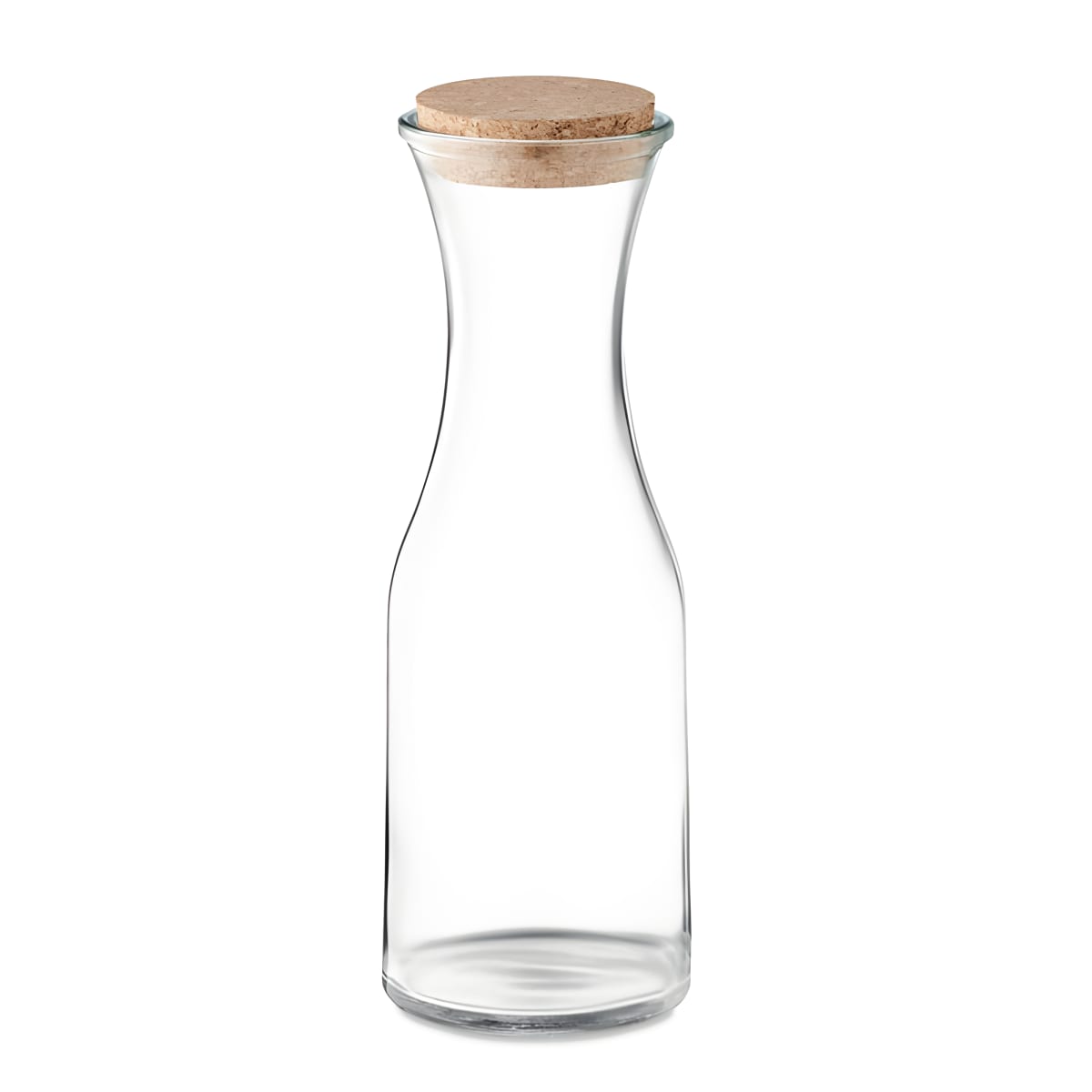 Our beautifully crafted carafe made from recycled glass features a natural cork lid. With a 1-liter capacity, this carafe is both elegant an