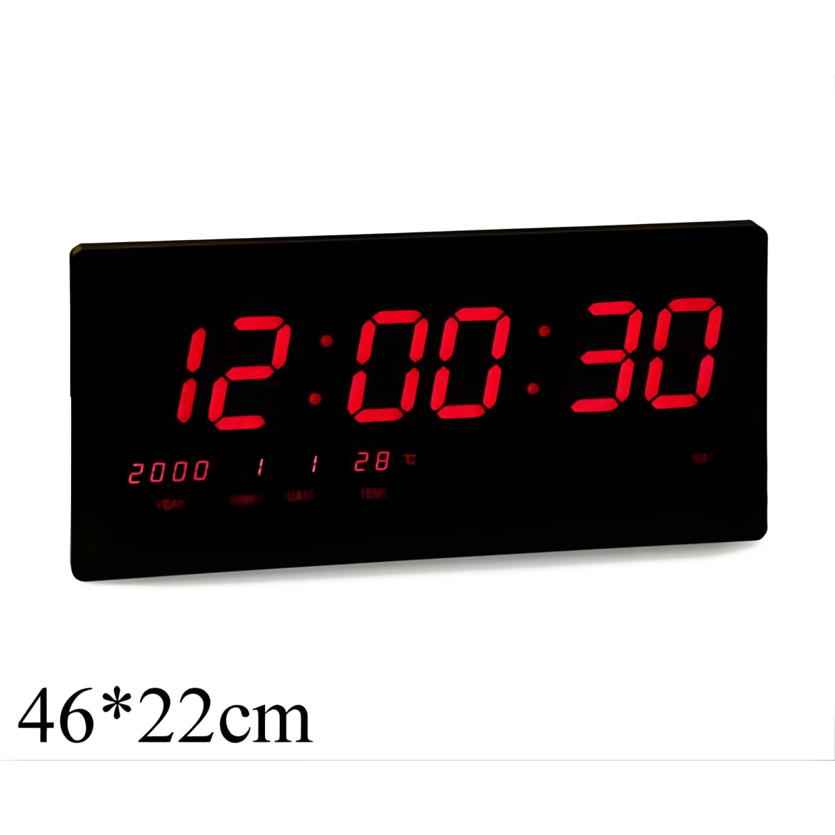 שעון קיר דיגיטלי אדום עם תצוגת LED