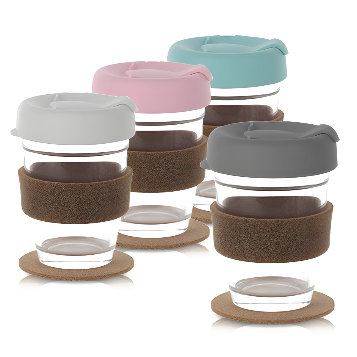 כוס זכוכית איכותית לשימוש רב פעמי עם תחתית וחבק שעם טבעי לנשיאה קלה ובטוחה. נפח: 300ML, מושלם להפחתת השימוש בפלסטיק. זמין בארבעה צבעים לבחיר